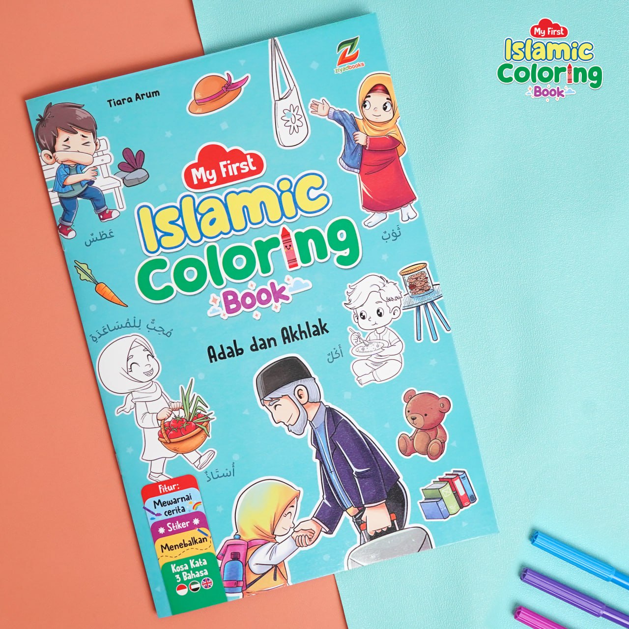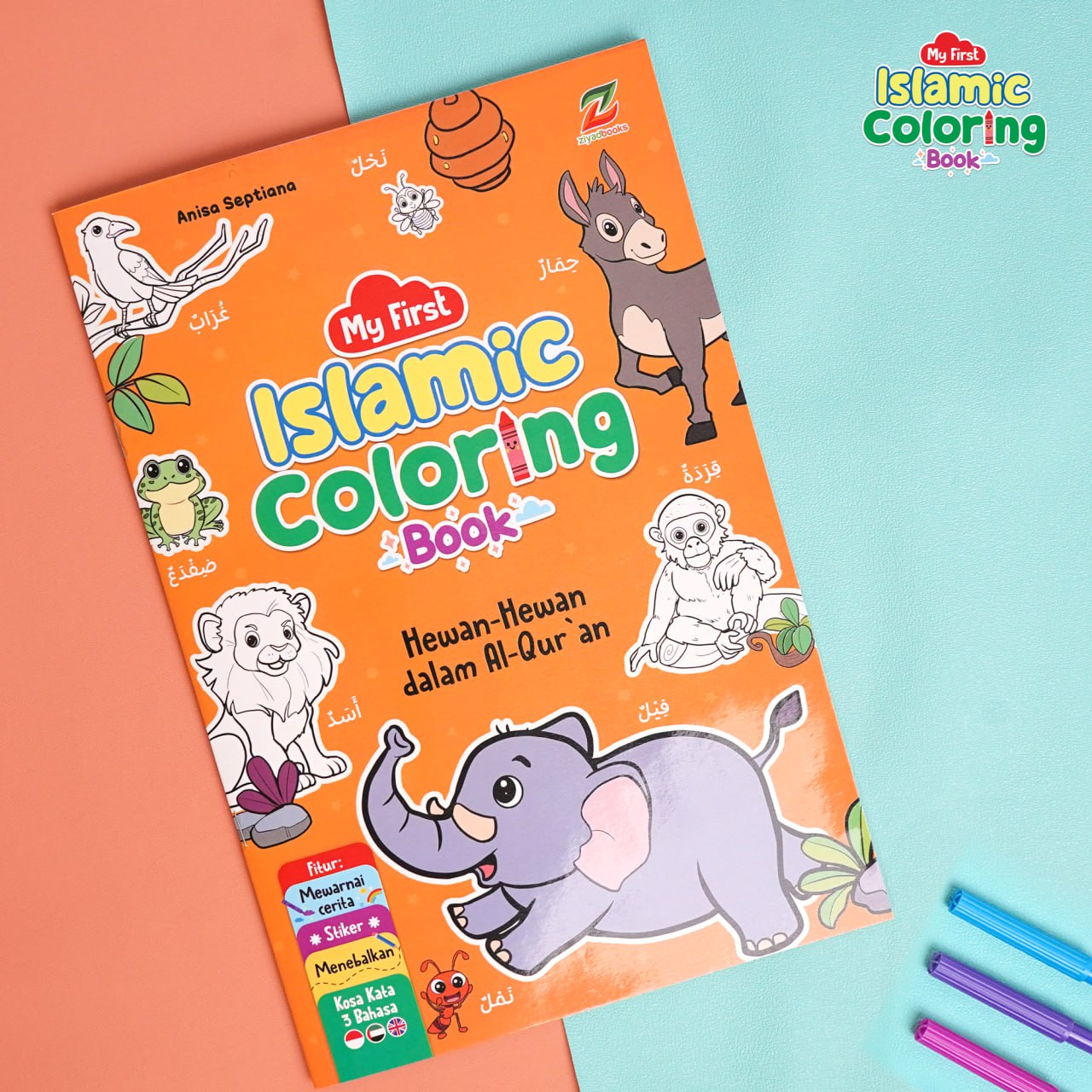 Sepaket buku mewarnai ini berisi 3 buku. Masing-masing buku mengusung tema yang berbeda yakni Hewan-Hewan dalam Al-Qur’an, Kisah Nabi dan Rasul, dan Akhlak dan Adab 😊