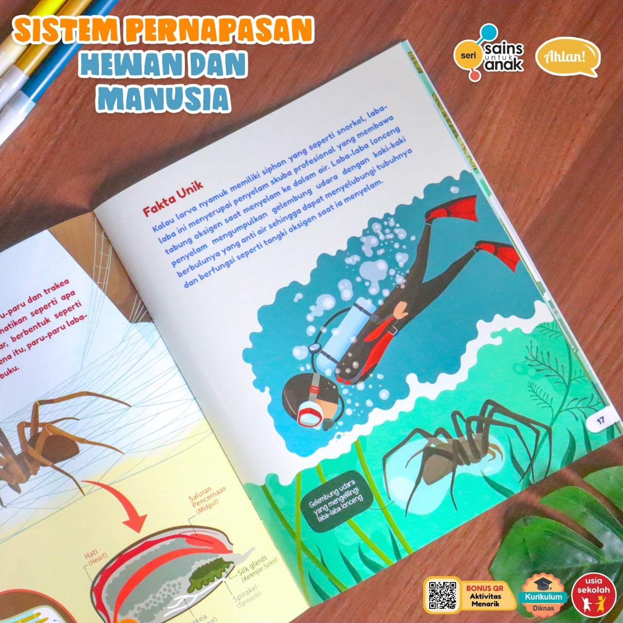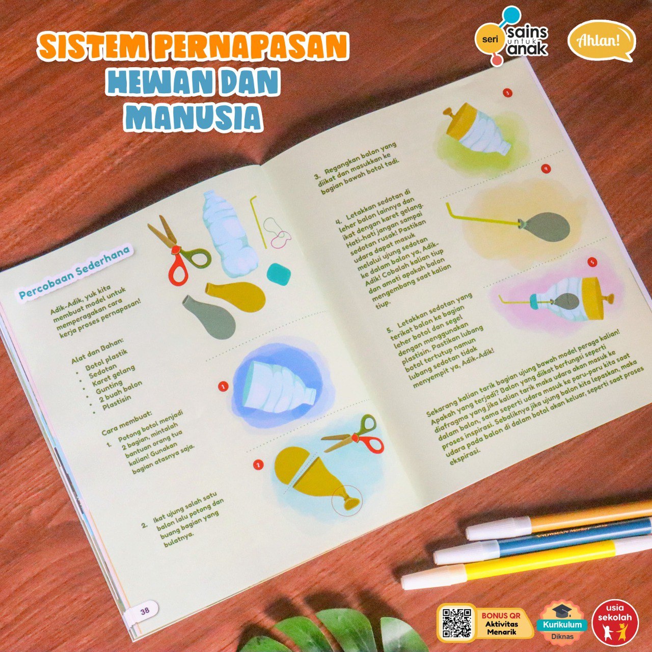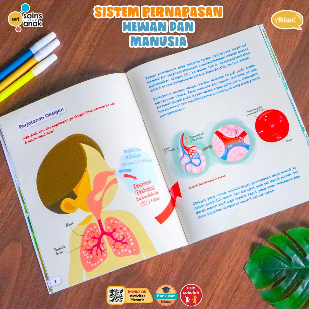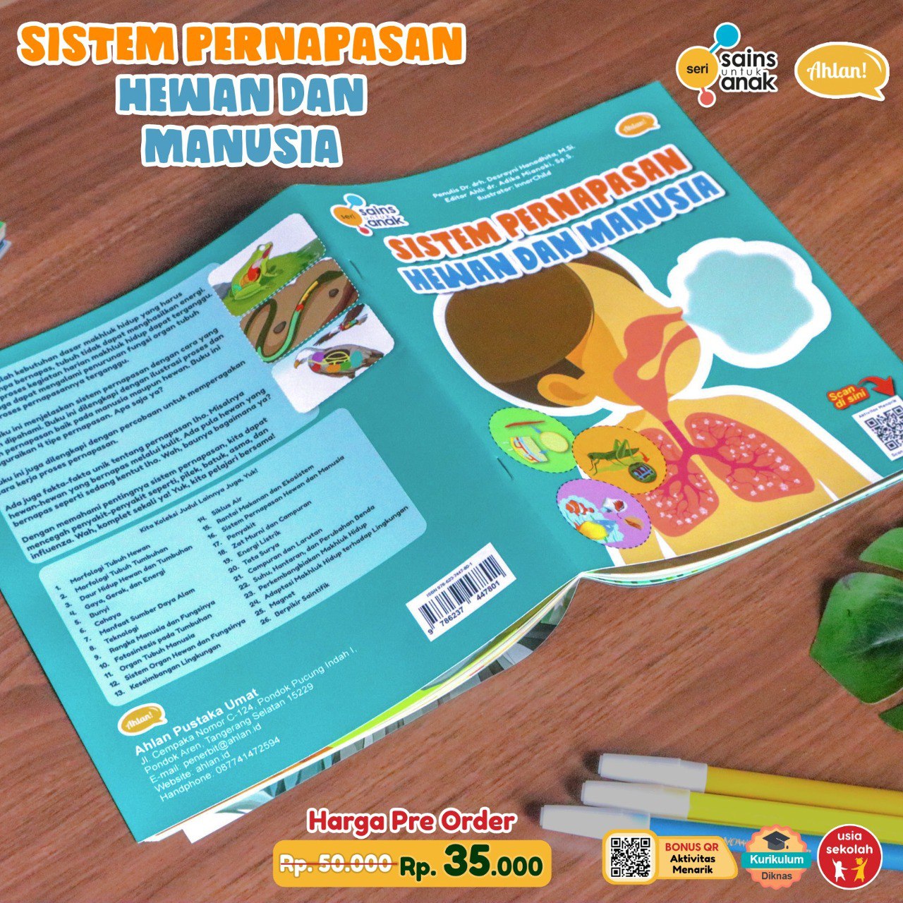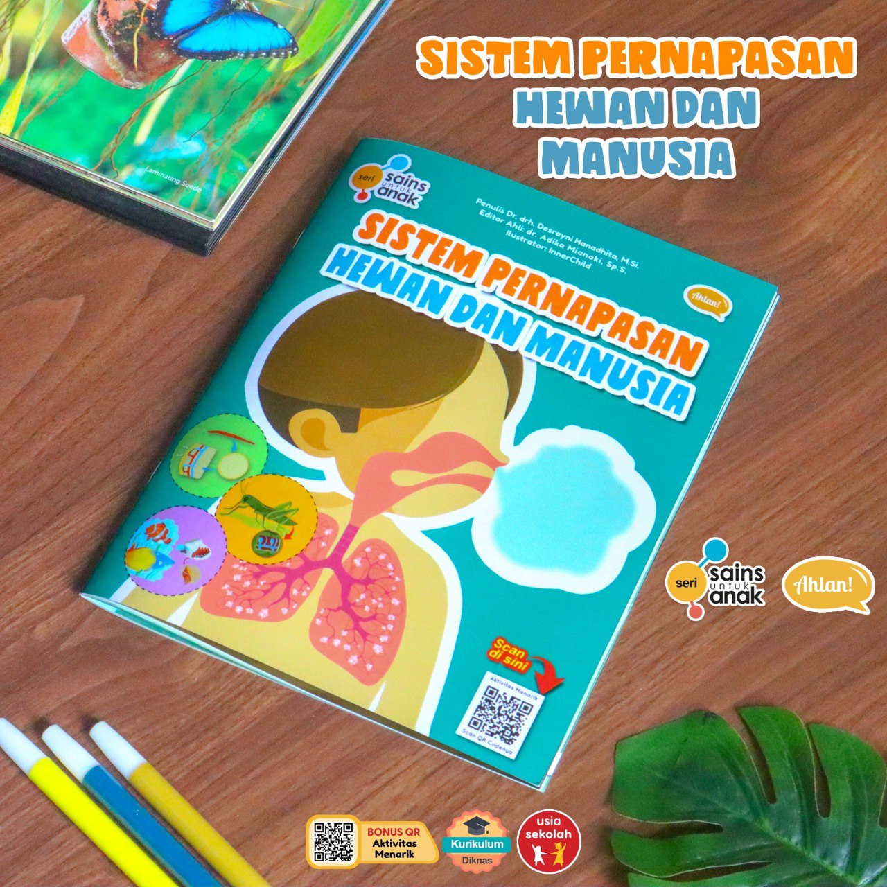 Setiap pembelian buku ini dilengkapi dengan QR Code yang mengarahkan anak-anak ke aktivitas belajar interaktif, sehingga mereka bisa lebih memahami konsep sistem pernapasan melalui permainan dan tugas yang menggugah imajinasi.